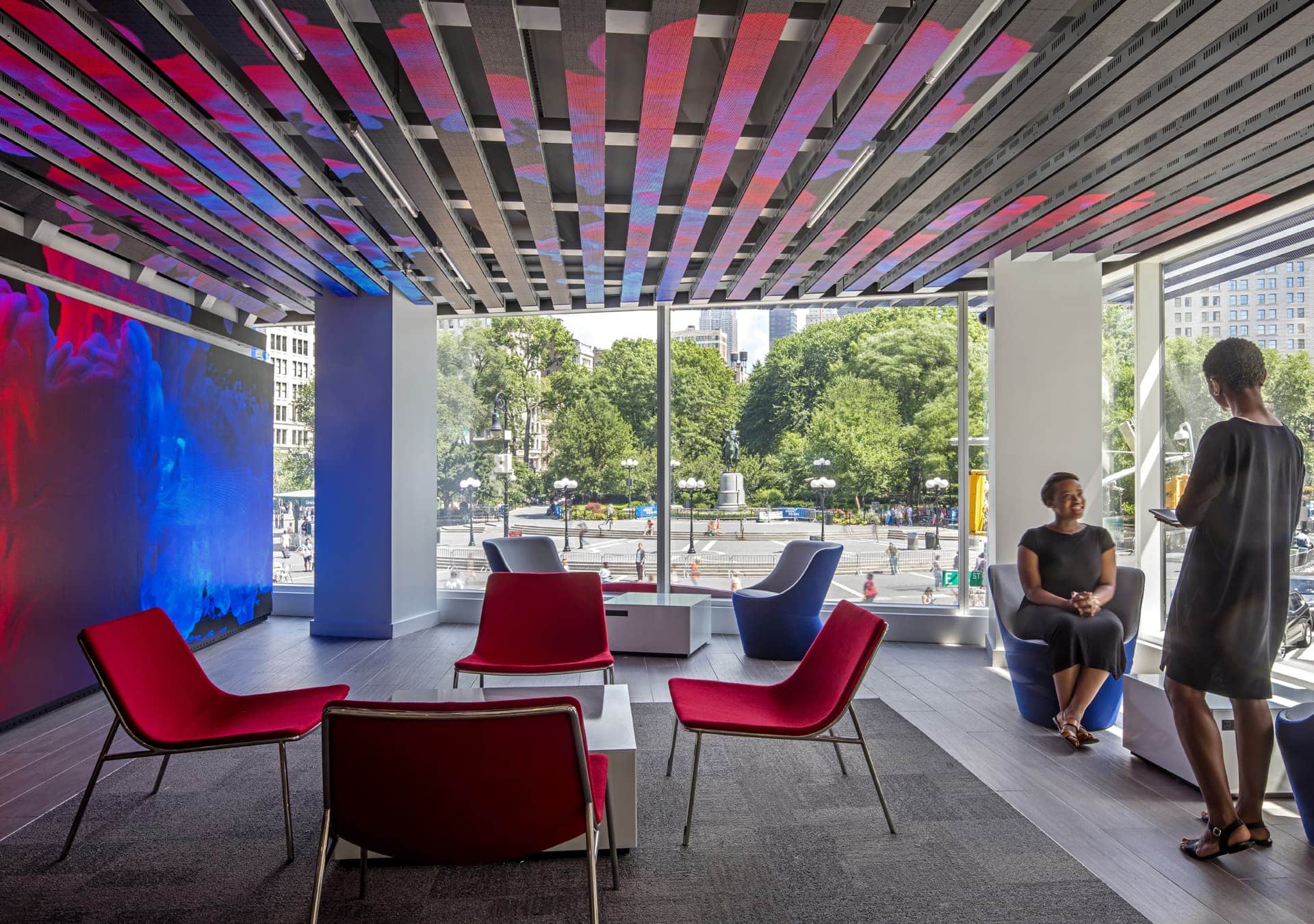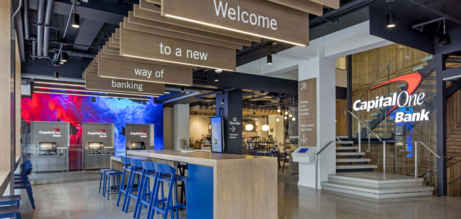 Capial One evolved from a credit card company into a multi-billion-dollar banking behemoth. Positioning itself as the future of retail banking, we created a flagship branch in the heart of New York City's Union Square. Building off of the 360 Cafe pilot program, the flagship is an amalgam of customer-centric technology and the comforts of your local community hub. Free WiFi, charging stations, and the cafe offerings encouraged customers to extend their stay by working, relaxing, and enjoying their time wating for bankers.